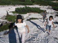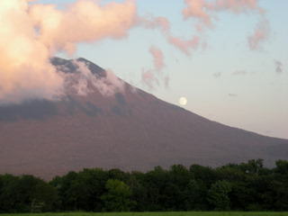 夕暮れ時、羊蹄山からうっすらあらわれた美しい月